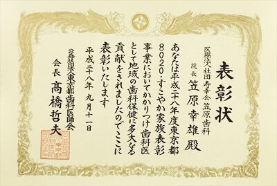 かかりつけ歯科医療機関として、当院の患者様が80歳以上で20本以上の歯を維持する